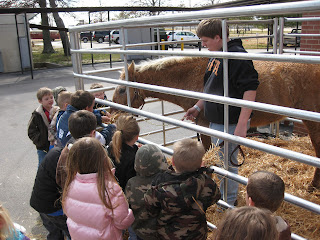 Karlee's mom, Halee, brought their pet "Spike!" It is a bearded dragon. It was great for the kids to learn about reptiles in science, then get to see and touch a real reptile. Thank you!
